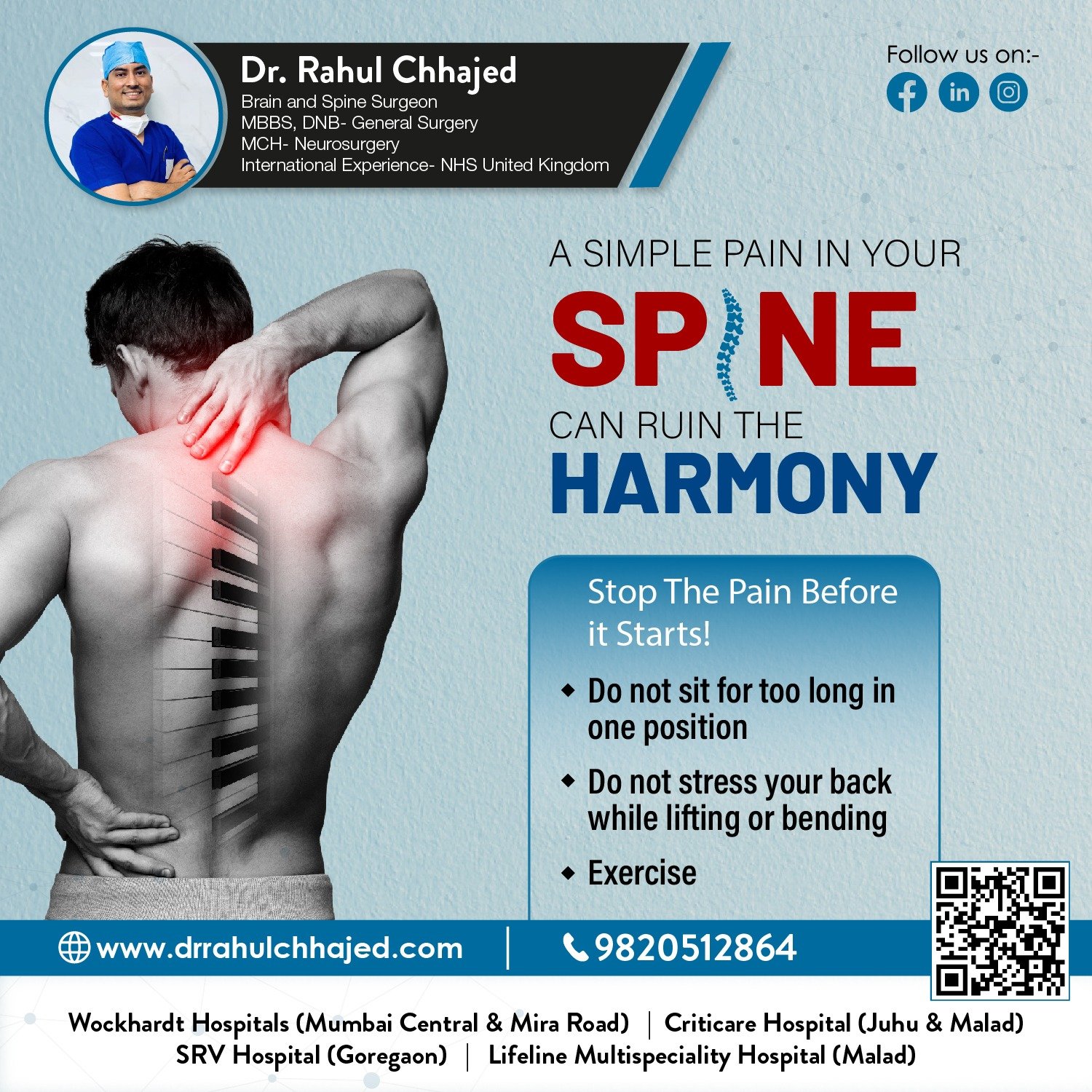 - What are the services/treatments offered by Dr. Rahul Chhajed? Dr. Rahul Chhajed is a prominent Neurosurgeon and practicing for more than 10 years. He is an expert in Stroke, Brain & Spine Surgery, Brain & Spinal tumors, Back Pain, Minimal invasive spine surgery / endoscopic spine surgery, Brain Trauma/Injuries, Stroke, Paralysis Etc.
